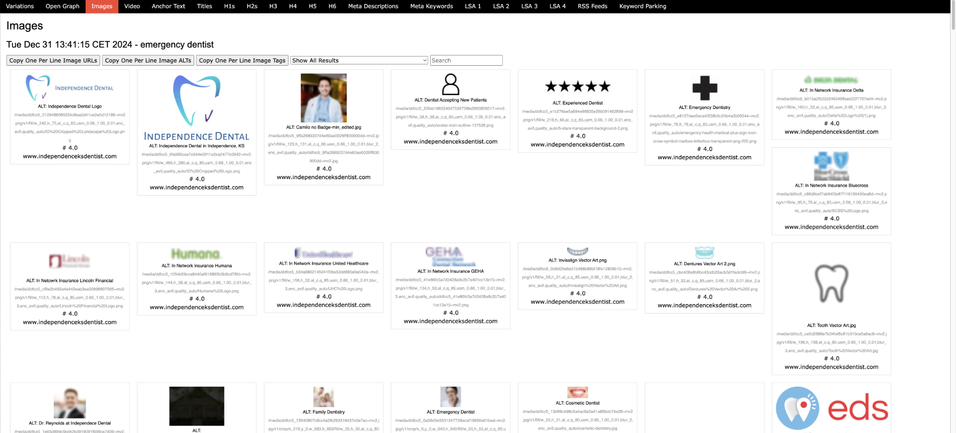 This file presents all 100 search results for the query, complete with their on-page SEO details. It provides insights into how these pages utilize keyword variations, Open Graph data, images (including quantity), anchor text, titles, headings, meta descriptions, meta keywords, LSA keywords, RSS feeds, and keyword parking strategies.