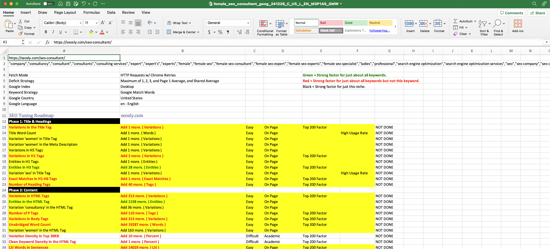 This report gives me confidence that ranking for this phrase is achievable, even though my SEO consultant page isn’t specifically optimized for it yet. The Roadmap highlights a clear need to incorporate “female SEO consultant” and its variations in key areas across the page. Making these changes alone could likely boost my rankings. Additionally, adding more entities and LSI keywords would further enhance the page’s topical relevance, increasing its potential to rank higher.