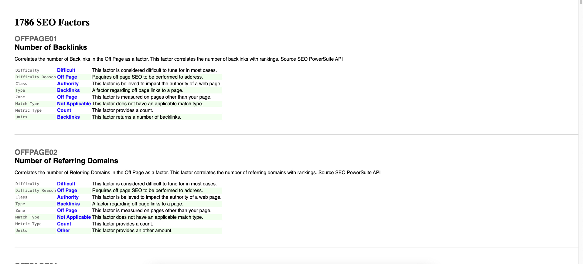 - Basic Off Page - Focuses on foundational off-page elements like link diversity and anchor text profiles.